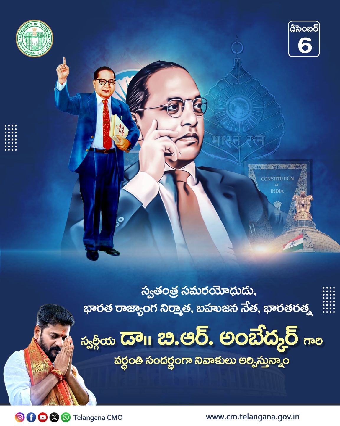 భారత రాజ్యాంగ నిర్మాత డాక్టర్ బీఆర్ అంబేద్కర్ గారి వర్ధంతి: ముఖ్యమంత్రి రేవంత్ రెడ్డి ఘన నివాళి”